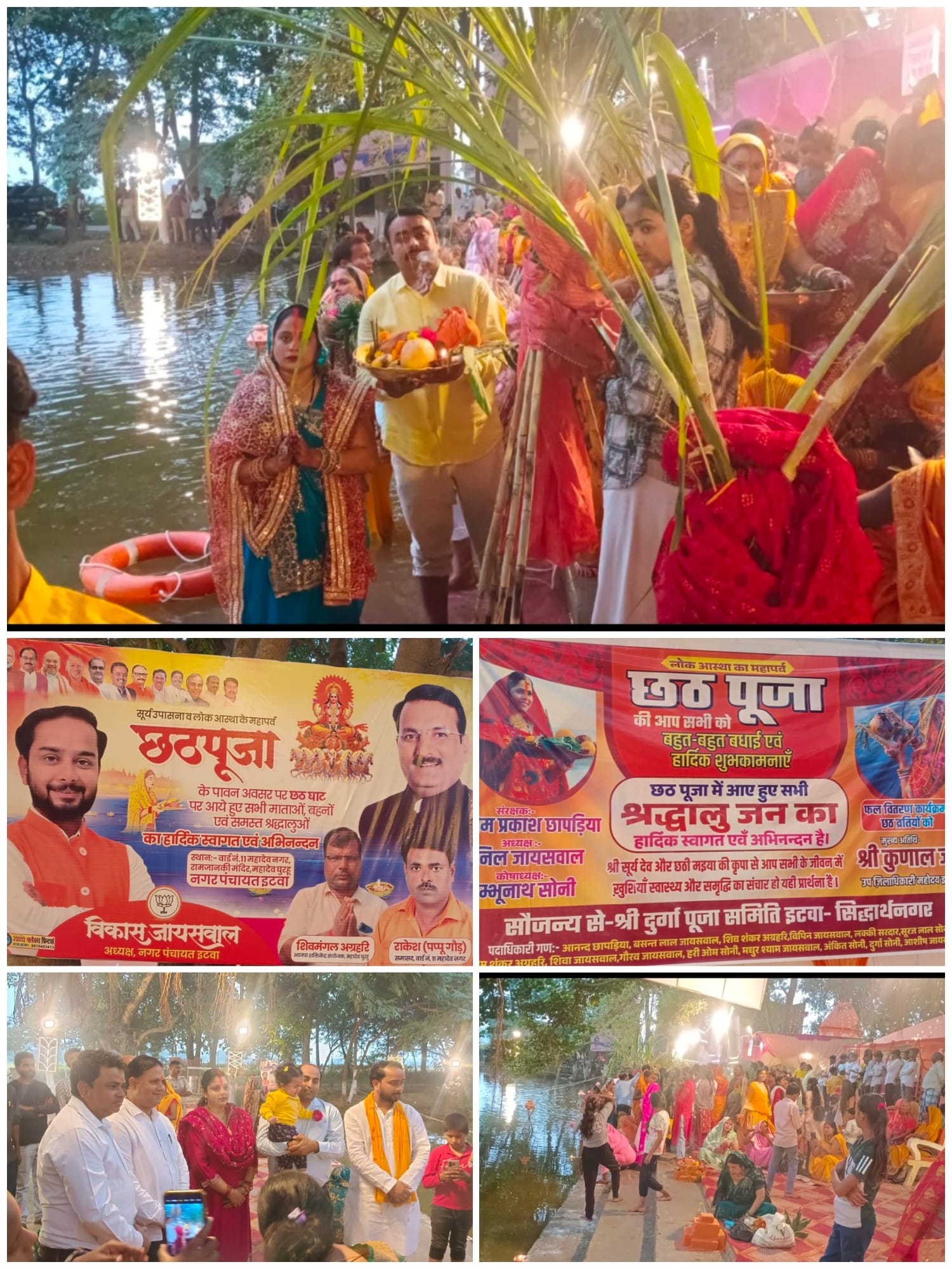 पूरे आयोजन में छठ घाट और मंदिर परिसर को आकर्षक रूप से सजाया गया था। सूर्य उपासना के इस पर्व पर इटवा नगर में श्रद्धा, भक्ति और एकता का सुंदर दृश्य देखने को मिला।