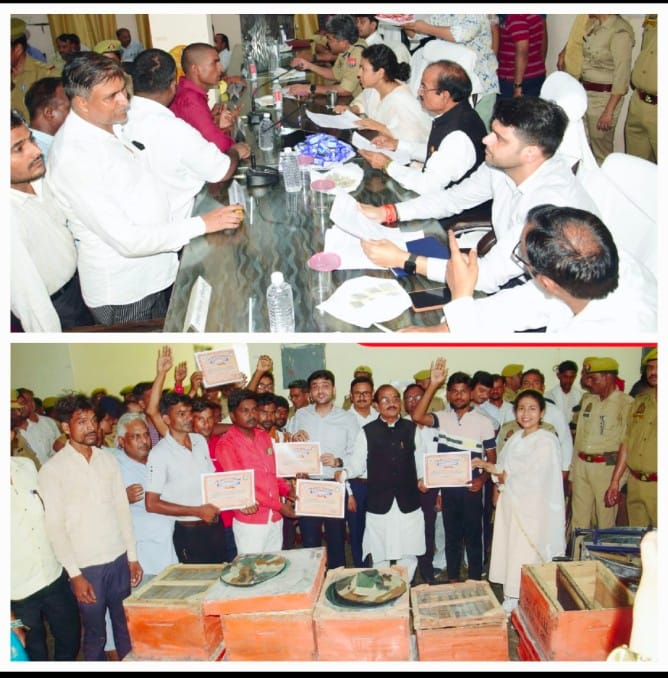 संपूर्ण समाधान दिवस के दौरान डीएम दुर्गा शक्ति नागपाल, विधायक विनोद शंकर अवस्थी, एसपी संकल्प शर्मा और सीडीओ अभिषेक कुमार ने संयुक्त रूप से जीरो पावर्टी लाइन के अंतर्गत विभिन्न योजनाओं के लाभार्थियों को स्वीकृति पत्र और किट वितरित किए। राष्ट्रीय वृद्धावस्था पेंशन योजना के तहत तीन लाभार्थियों को स्वीकृति पत्र दिए गए, जबकि राष्ट्रीय पारिवारिक लाभ योजना के तहत तीन अन्य लाभार्थियों को पत्र प्रदान किए गए। वहीं खादी ग्रामोद्योग बोर्ड की ओर से 20 लाभार्थियों को मधुमक्खी पालन हेतु किट का वितरण किया गया। इस अवसर पर ब्लॉक धौरहरा के फैमिली आईडी अनुश्रवण कार्य में उत्कृष्ट प्रदर्शन करने वाले पंचायत सहायक फरहान, अमन नाग, अमित कुमार, कल्पना वर्मा, उर्मिला राजपूत तथा कंप्यूटर ऑपरेटर मोहम्मद नसीम को प्रशस्ति पत्र देकर सम्मानित किया गया।