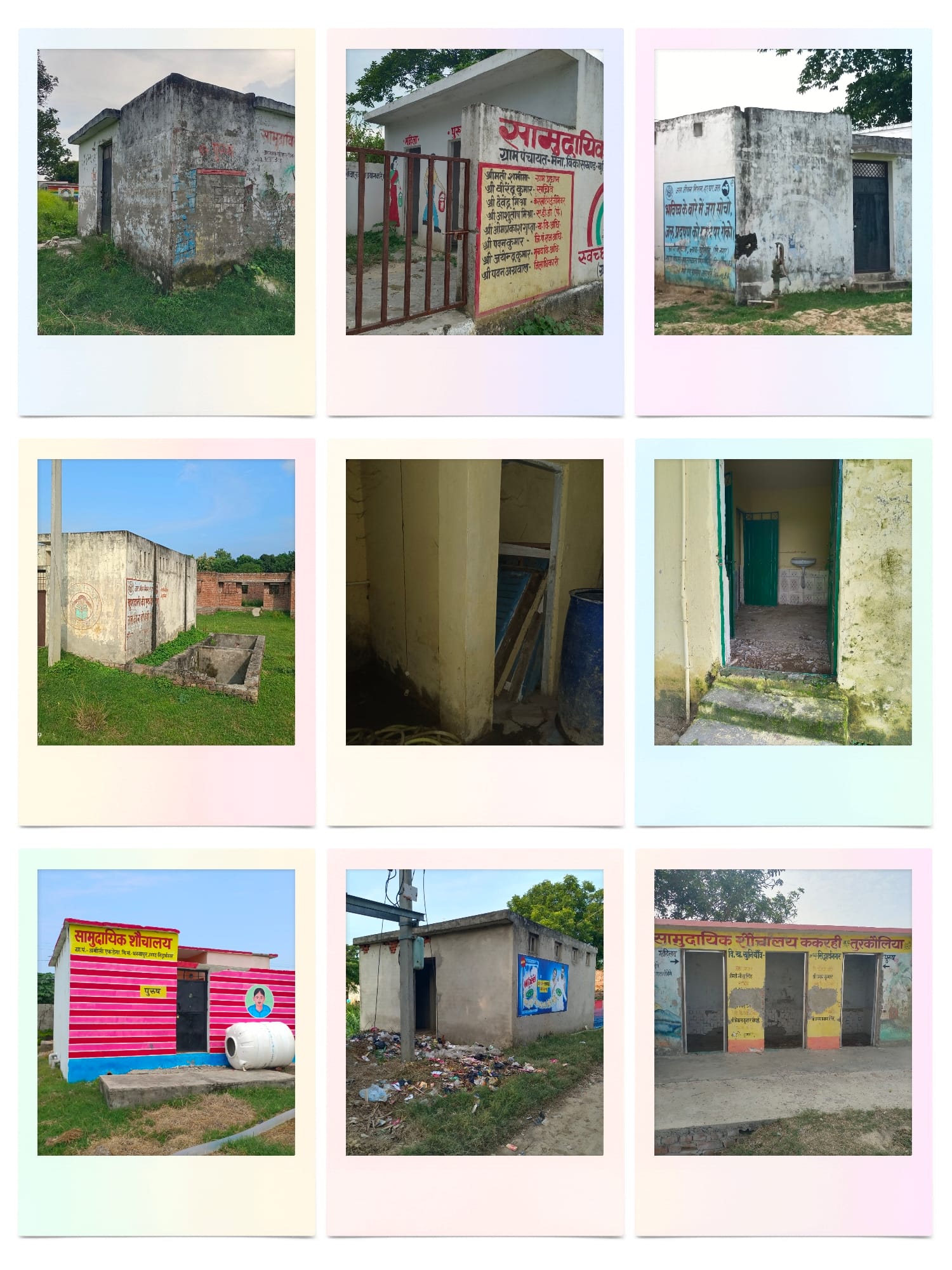 ग्रामीणों ने बताया कि सामुदायिक शौचालय सिर्फ दिखावे के लिए बने हैं। न तो समय से खुलते हैं, न कोई देखरेख करने वाला है। कई शौचालयों में पानी की टंकी या नल तक नहीं लगे, कहीं सीटें और वॉशबेसिन टूटकर नष्ट हो चुके हैं। कई जगह भवन खंडहर का रूप ले चुके हैं। तो कई जगह मोटर लगे हैं तो विद्युतीकरण नहीं