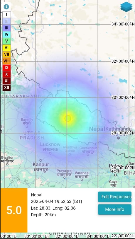 खीरी में भूकंप के झटके से मचा हड़कंप बताया जा रहा है झटके की मानक 3.0 तक और वही उत्तर भारत से लगा पड़ोसी देश नेपाल में रिक्टर पैमाने पर 5.0 तीव्रता का भूकंप आया है।