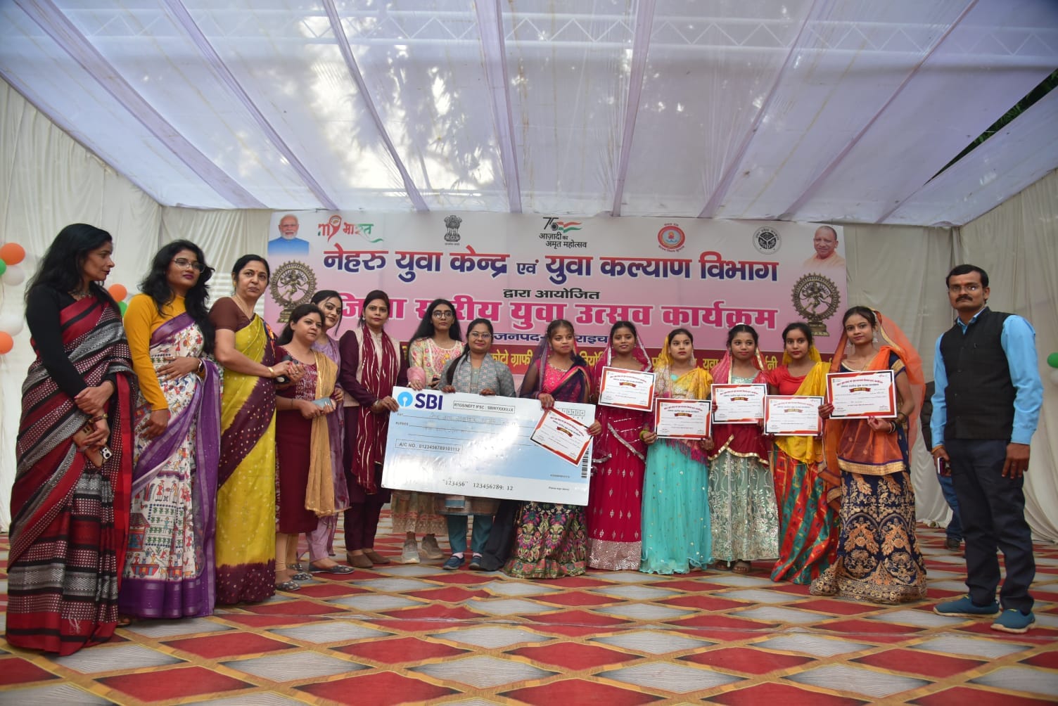 बहराइच । महिला कल्याण सम्बन्धी विभिन्न योजनाओं एवं कार्यक्रमों के प्रति महिलाओं में जनजागरूकता के उद्देश्य से आकांक्षी विकास खण्ड मुख्यालय हुज़ूरपुर में महिला आयोग की सदस्य श्रीमती अंजु प्रजापति की अध्यक्षता में महिला कल्याण, समाज कल्याण, श्रम एवं दिव्यांगजन सशक्तिकरण विभाग के संयुक्त तत्वावधान में वृहस्पतिवार को आयोजित मेगा शिविर का आयोजन किया गया। सदस्य श्रीमती प्रजापति ने मेगा कैम्प में लगाये गये स्टालों का निरीक्षण करते हुए बाल विकास विभाग पुष्टाहार के स्टाल के निरीक्षण के दौरान गर्भवती महिलाओं आशा देवी, आरती, राजवन्ती, गुड़िया व संगीता की गोद भराई की तथा पल्लवी, रंजीत, साक्षी, अल्तमस व असद रजा को अन्न प्रासन्न कराया।