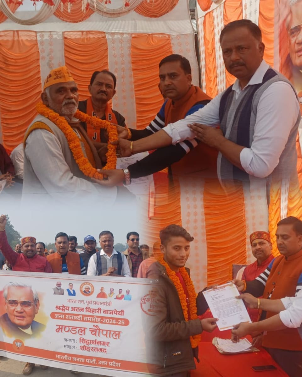 भारतीय जनता पार्टी के भारत रत्न पूर्व प्रधानमंत्री स्वर्गीय अटल बिहारी वाजपेई की 100 वीं जयंती पर बुधवार को सुशासन दिवस के रूप में मनाई गई। इस दौरान उनके द्वारा चलाई गई प्रधानमंत्री सड़क योजना के तहत प्रधानमंत्री सड़क पर पद यात्रा निकाली गयी एवं महला चौराहे पर चौपाल किया गया । इस कार्यक्रम की अध्यक्षता मण्डल अध्यक्ष शिवशक्ति शर्मा ने किया। कार्यक्रम के मुख्य अतिथि नगर पंचायत शोहरतगढ़ अध्यक्ष प्रतिनिधि रवि अग्रवाल ने कहा कि श्रद्धेय अटल बिहारी वाजपेयी एक आदर्श राजनेता थे। वे पहले ऐसे प्रधानमंत्री थे जिन्होंने 26 राजनीतिक दलों के साथ मिलकर सरकार बनाई। वे तीन बार भारत के प्रधानमंत्री बने। वे अपने जीवन के प्रारम्भिक दिनों में राष्ट्रीय स्वयंसेवक संघ के प्रचारक रहे। अटल बिहारी वाजपेयी अपनी वक्तृत्व कला के लिए प्रसिद्ध थे। मुख्य वक्ता प्रधान संघ के जिलाध्यक्ष डा० पवन मिश्रा ने पूर्व प्रधानमंत्री अटल बिहारी वाजपेई को युग पुरुष बताते हुए उनके कार्यकाल के दौरान किए गए कार्य, विदेश नीति, भारत को परमाणु शक्ति बनाने का उल्लेख किया। और उन्होंने कहा देश में सड़कों का जाल बिछाने में एवं देश को आगे बढाने में पूर्व प्रधानमंत्री वाजपेई का महत्वपूर्ण योगदान रहा है। उनके इस योगदान को भुलाया नहीं जा सकता है। इस दौरान नपं अध्यक्ष प्रतिनिधि रवि अग्रवाल, डॉ पवन मिश्रा,शिवशक्ति शर्मा,राधेश्याम मिश्रा, उमाकांत शुक्ला, कृष्णा वर्मा,अभिषेक चौधरी,बाल मुकुंद,रामानंद मिश्रा, राजन शुक्ला,राजन गोस्वामी,पप्पू शुक्ला, आशुतोष,अरविन्द चौधरी,महातम चौधरी आदि कार्यकर्ता मौजूद रहे।