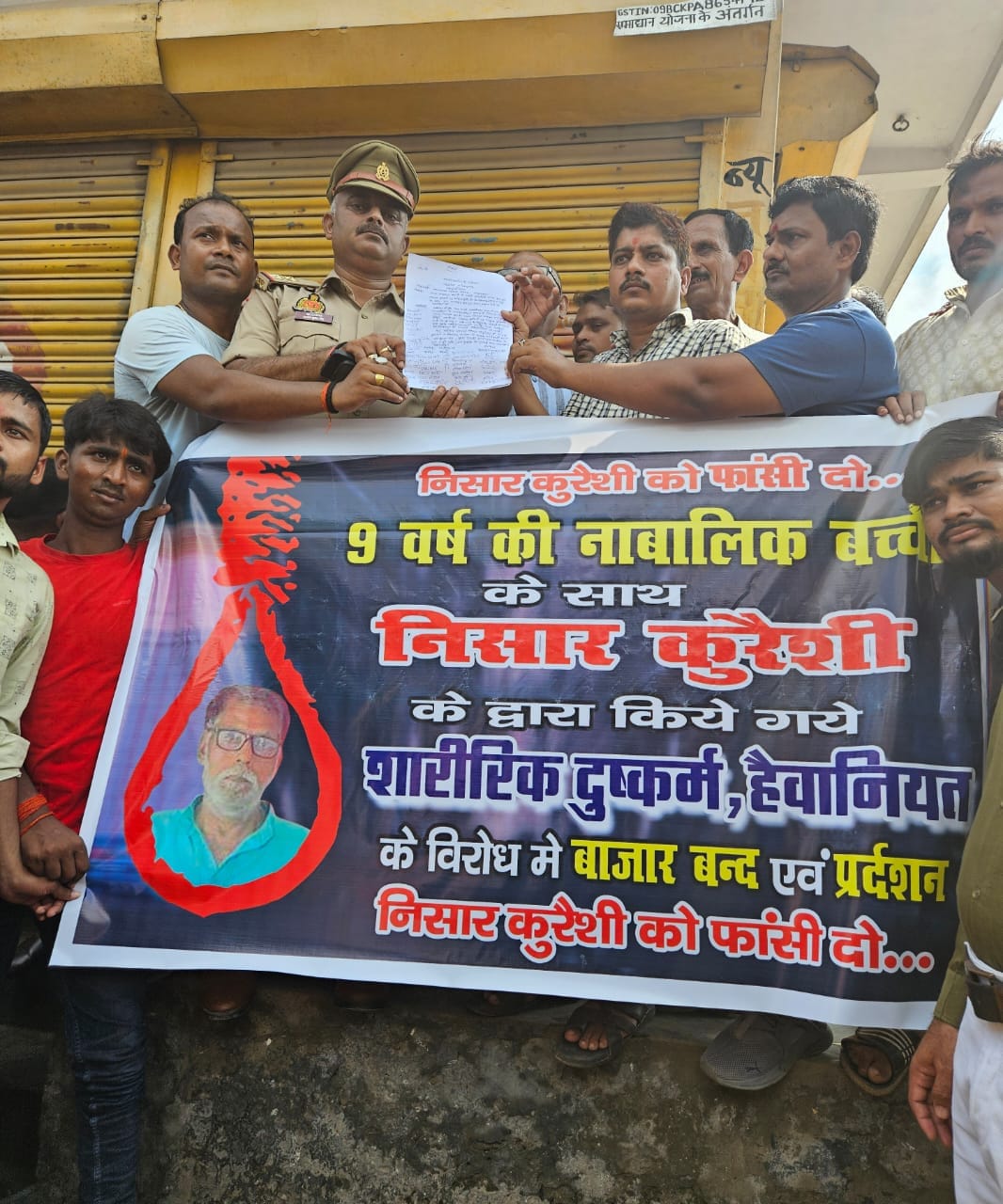 बढ़नी- सिद्धार्थ नगर जनपद के ढेबरुआ थाना क्षेत्र अंतर्गत भारत नेपाल सीमा पर स्थित नगर पंचायत बढ़नी कस्बे में एक नाबालिग बच्ची से दुष्कर्म व छेड़छाड़ करने का मामला प्रकाश में आया था। स्थानीय पुलिस उक्त मामले को लेकर आरोपी के खिलाफ मामला दर्ज कर जांच पड़ताल में जुट हुई थी,जिसे बाद मे बीते शुक्रवार को मुड़िला सरयू नहर से गिरफ्तार कर पोस्को एक्ट के तहत कार्रवाई करते हुए ढेबरुआ पुलिस ने न्यायालय के समछ पेश कर जेल भेज दिया था। मामला दो समुदायों से जुड़ा हुआ बताया जा रहा है, जिससे माहौल तनाव पूर्ण हो गया था।सूत्रों से मिली जानकारी अनुसार उक्त मामले को लेकर स्थानीय लोगों द्वारा रविवार की सुबह हाथों में बैनर पोस्टर लेकर दुकानें बंद करने की अपील करते हुए विरोध प्रदर्शन कर रहे थे, जिसमें आरोपी निसार कुरैशी वार्ड नंबर 4 भट्ठा मोहल्ला कस्बा बढनी थाना ढेबरुआ जनपद सिद्धार्थनगर निवासी के घर पर बुलडोजर चलायें जाने के साथ ही फांसी दिलाये जाने की मांग कर रहे थे। जिससे कुछ जगहों पर झड़प भी हो गई थीं, साथ ही कुछ लोगों द्वारा ईट पत्थर चलने की बातें कही जा रही है। जिसमें कुछ लोगों को चोटें आईं हैं। जिसका कई बीडीओ भी सोसल मीडिया में वायरल हो रहा है।वहीं स्थानीय पुलिस द्वारा स्थिति को काबू में करने के लिए सख्ती बरते जाने पर भगदड़ मच गई थी। फिलहाल मौके पर प्रशासन के उच्चाधिकारी एएसपी, एसडीएम,सीओ सहित कई थानों की पुलिस फोर्स मौके तैनात है। जिससे स्थिति काबू में है। वहीं हिंदू युवा वाहिनी के पूर्व जिला उपाध्यक्ष व रामलीला समिति के प्रबंधक भानू प्रताप सिंह का कहना है कि मुस्लिम समाज द्वारा हिन्दू आस्था के खिलाफ कई तरह की अनैतिक कार्य किया जा रहा है। जिससे हिंदू जनमानस काफी आहत हैं। पीड़ित परिवार भी काफी डरा सहमा हुआ है। उसे सुरक्षा देते हुए,ऐसे मामलों में प्रशासन द्वारा सख्त कार्रवाई किये जाने की जरूरत है। स्थानीय निवासी मनोज कुमार पाण्डेय का कहना है कि अभी बाजार बंद है ।और लोगों द्वारा सख्त कार्रवाई की मांग की जा रही है। जिससे भविष्य में ऐसी घटनाओं पर रोक लगाई जा सके। नगर पंचायत अध्यक्ष सुनील कुमार अग्रहरि का कहना है कि उक्त संबंध में प्रशासन को उचित कार्रवाई हेतु एक ज्ञापन दिया गया है। और नगर की जनता से हमारी अपील है कि शांति व्यवस्था बनाए रखें और शांतिपूर्ण माहौल में नवरात्रि त्यौहार मनायें।उक्त संबंध में शोहरतगढ़ एसडीएम चन्द्रभानू सिंह का कहना है कि माहौल शांतिपूर्ण बना हुआ है। प्रशासन मौके पर मौजूद है। और लोगों से दुकानें खोलें जाने की अपील की जा रही है। उम्मीद है कि जल्द ही दुकानें खुलनी शुरू हो जायेंगी। और सब कुछ सामान्य हो जायेगा।