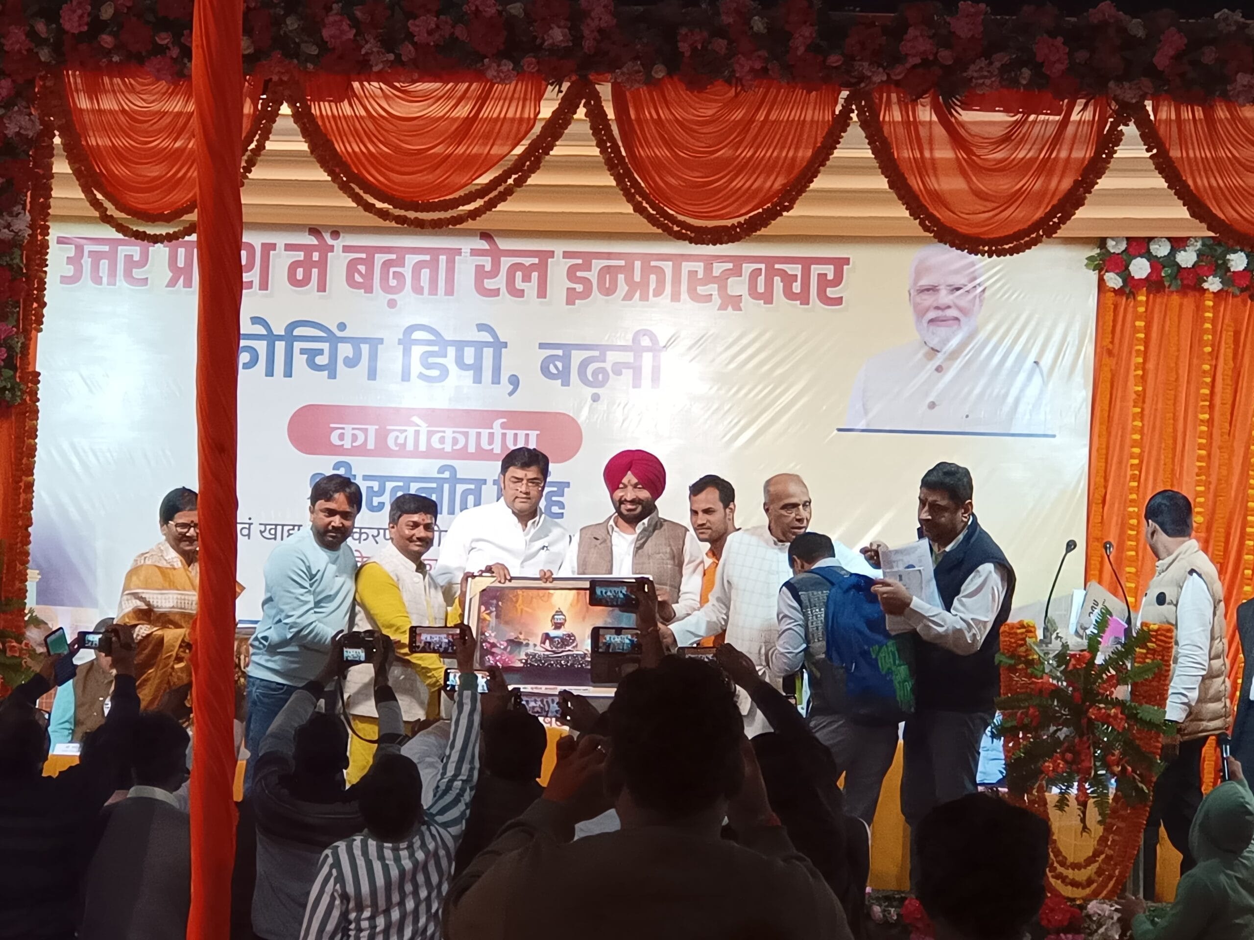 बढ़नी। गोरखपुर गोंडा लूप लाइन प्रखंड के भारत नेपाल सीमावर्ती महवपूर्ण स्टेशन बढ़नी में सांसद जगदंबिका पाल के पहल पर बने वशिंग पिट का बहु प्रतीक्षित लोकार्पण 8 दिसंबर दिन रविवार को केंद्रीय रेल राज्य एवम खाद्य प्रसंस्करण मंत्री रवनीत सिंह के द्वारा किया गया है।मिली जानकारी अनुसार करीब 15 करोड़ की लागत से नेपाल सीमावर्ती अमृत भारत स्टेशन बढ़नी के विकास कार्य परियोजना एवम यात्री सुविधाओं पर खर्च किया जाना है। उत्तर प्रदेश में बढ़ता रेल इन्फ्रास्ट्रक्चर कोचिंग डीपो बढ़नी का लोकार्पण रवनीत सिंह रेल एवं खाद्य प्रसंस्करण उद्योग राज्य मंत्री भारत सरकार के कर कमलों द्वारा रविवार को जगदंबिका पाल सांसद लोकसभा डुमरियागंज एवं बृजलाल सांसद राज्यसभा के उपस्थिति में किया गया है।