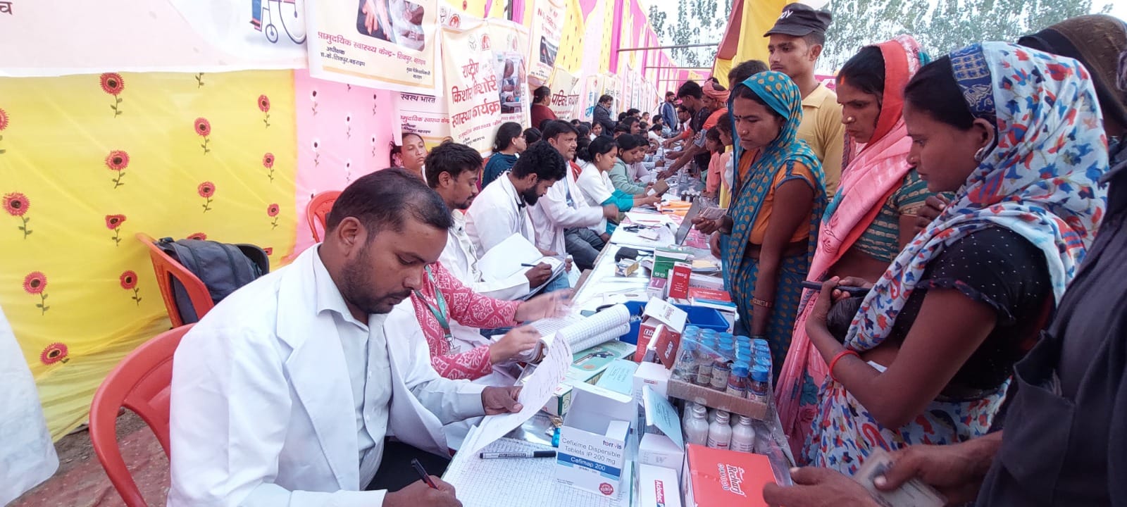 बहराइच । विभिन्न विभागों द्वारा संचालित की जा रही जन कल्याणकारी योजनाओं से जिले के प्रत्येक पात्र ग्रामवासी को संतृप्त किये जाने तथा जनसमस्याओं के निस्तारण के उद्देश्य से जिलाधिकारी मोनिका रानी की अभिनव पहल पर संचालित किये जा रहे सेवा से संतृप्तिकरण अभियान के द्वितीय चरण अन्तर्गत मंगलवार को विकास खण्ड शिवपुर की ग्राम पंचायत बितनिया में आयोजित सेवा से संतृप्तिकरण अभियान के दौरान चिकित्सा एवं स्वास्थ्य विभाग द्वारा 437 मरीज़ों का स्वास्थ्य परीक्षण कर औषधि का वितरण, 102 मरीजों को ई-संजीवनी के माध्यम से टेली मेडिसिन, 117 लोगों के आयुष्मान कार्ड बनाये गये, 78 लोगों को चश्मा वितरण, 130 लोगों की पैथालोजी जांच, 23 किशोरियों एवं बच्चों का टीकाकरण, 127 किशोरियों को सेनेटरी पैड व आयरन फेलिक एसिड का वितरण, 01 कुष्ठ रोगी को जूता, 07 क्षय रोगियों को गोद लेने के साथ-साथ 68 लोगों की आभा आई.डी. बनायी गई।
