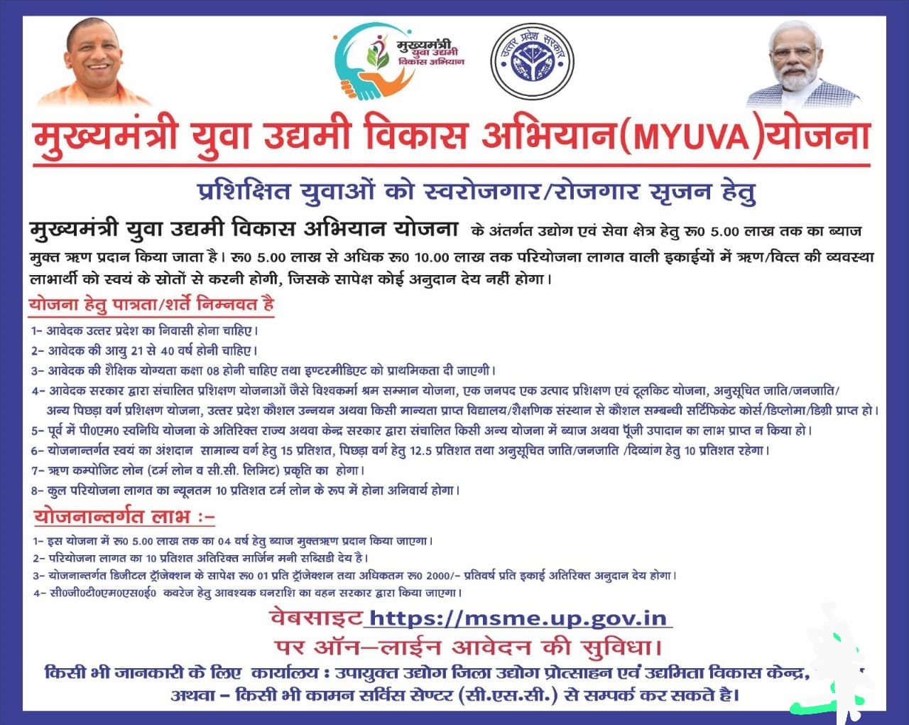 मुख्यमंत्री युवा उद्यमी विकास अभियान योजना के अन्तर्गत 04 वर्षों हेतु ₹05.00 लाख तक ब्याज मुक्त ऋण देगी यूपी सरकार