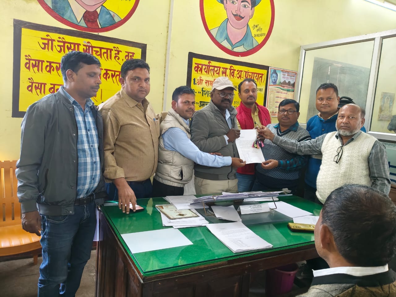 बढ़नी- आनलाइन उपस्थिती दर्ज कराये जाने के विरोध में सोमवार को बढ़नी ब्लांक के सभी सचिवों ने विरोध प्रदर्शन करते हुए एडीओ पंचायत राम विलास को अपना अपना डोंगल सौंप दिया है। ब्लॉक मुख्यालय पर सभी सचिवों का विरोध प्रदर्शन लगातार जारी है। प्रांतीय कार्यकारिणी के आवाहन पर पूर्व प्रेषित ज्ञापन दिनांक 01/12/2025 के क्रम में ऑनलाइन उपस्थिति प्रणाली सहित मूल विभागीय कार्यों के अतिरिक्त अन्य विभागों के कार्यों के विरोध में चल रहे सांकेतिक शांतिपूर्ण सत्याग्रह आंदोलन तक के परिपालन में दिनांक 15/12/2025 तक सभी ग्राम पंचायत सचिव की कोई भी मांग अभी तक पूर्ण न होने के कारण सभी सचिवों ने अपना अपना डी. एस. सी/डॉगल एडीओ पंचायत के समक्ष सामूहिक रूप से उपस्थित होकर जमा कर दिया गया हैं। सचिव उदय प्रताप ने कहा की डोंगल जमा करने से राज्य वित्त व केंद्रीय वित्त का भुगतान नहीं हो पायेगा,बाकी छोटा-मोटा काम सुचारू रूप से होता रहेगा। अधिक विभागों के कार्य के साथ ऑनलाइन उपस्थिति प्रणाली वर्तमान परिस्थितियों में अव्यावहारिक है। तकनीकी समस्याओं और फील्ड परिस्थितियों के कारण यह प्रणाली शासकीय कार्यों में बाधा उत्पन्न कर सकती है। इसलिए आदेश पर तत्काल पुनर्विचार करने की जरुरत है। इन्हीं सब मांगो एवं विरोध के साथ आज ब्लॉक मुख्यालय पर डोंगल जमा किया गया है। इसके साथ ही उन्होंने संगठन के उच्च पदाधिकारी के निर्देश के बाद आगे की रणनीति तय करने की बात कही।उक्त अवसर पर मोहम्मद नियाज ,उदय प्रताप गौतम ,शकील अहमद , रविकान्त यादव, अवधेश कुमार यादव,अनुपम सिंह , संजय कुमार, दिलीप कुमार, शीला पटेल आदि लोग मौजूद रहे।