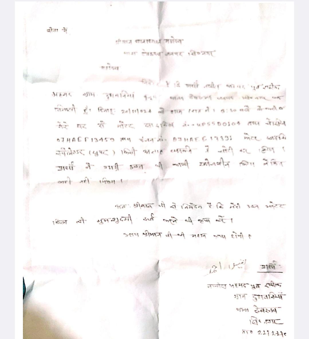 बढ़नी- ढेबरूआ थाना क्षेत्र में बाइक चोरों का गिरोह एक बार फिर तेजी से सक्रिय हो रहा है , ग्राम पंचायत दुधवनिया बुजुर्ग के निवासी नफीस अहमद पुत्र रफीक अहमद ने ढेबरूआ थाने में शिकायती प्रार्थना पत्र दी है कि उनकी मोटरसाइकिल सुपर स्प्लेंडर गाड़ी नंबर यू पी 55 डी 0104 बीते 20 नवंबर 2024 को उनके घर से रात करीब 8 : 30 बजे चोरी हो गई चोरी के बाद काफी खोजबीन की गई, लेकिन गाड़ी का कोई पता नहीं चला। ग्राम दुधवानियां निवासी नफीस अहमद ने बताया कि बीते 21 नवंबर को घटना की रिपोर्ट दर्ज कराने के लिए ढेबरुआ थाने पर तहरीर दी है किन्तु अभी तक कोई सुराग नहीं लग पाया है।बताया जाता है कि कुछ महीने पहले भी दुधवनिया बुजुर्ग गांव से एक पल्सर बाइक घर के बरामदे से चोरी हो गई थी किंतु अब तक बाइक का कोई सुराग नहीं मिल पाया है। इस तरह की घटनाओं पर पुलिस की निष्क्रियता से चोरों के हौसले बुलंद हो रहे हैं। ग्रामीणों का कहना है कि पुलिस प्रशासन को रिपोर्ट दर्ज कर प्रभावी कार्रवाई करनी चाहिए ताकि चोरी की घटनाओं पर अंकुश लगाया जा सके।