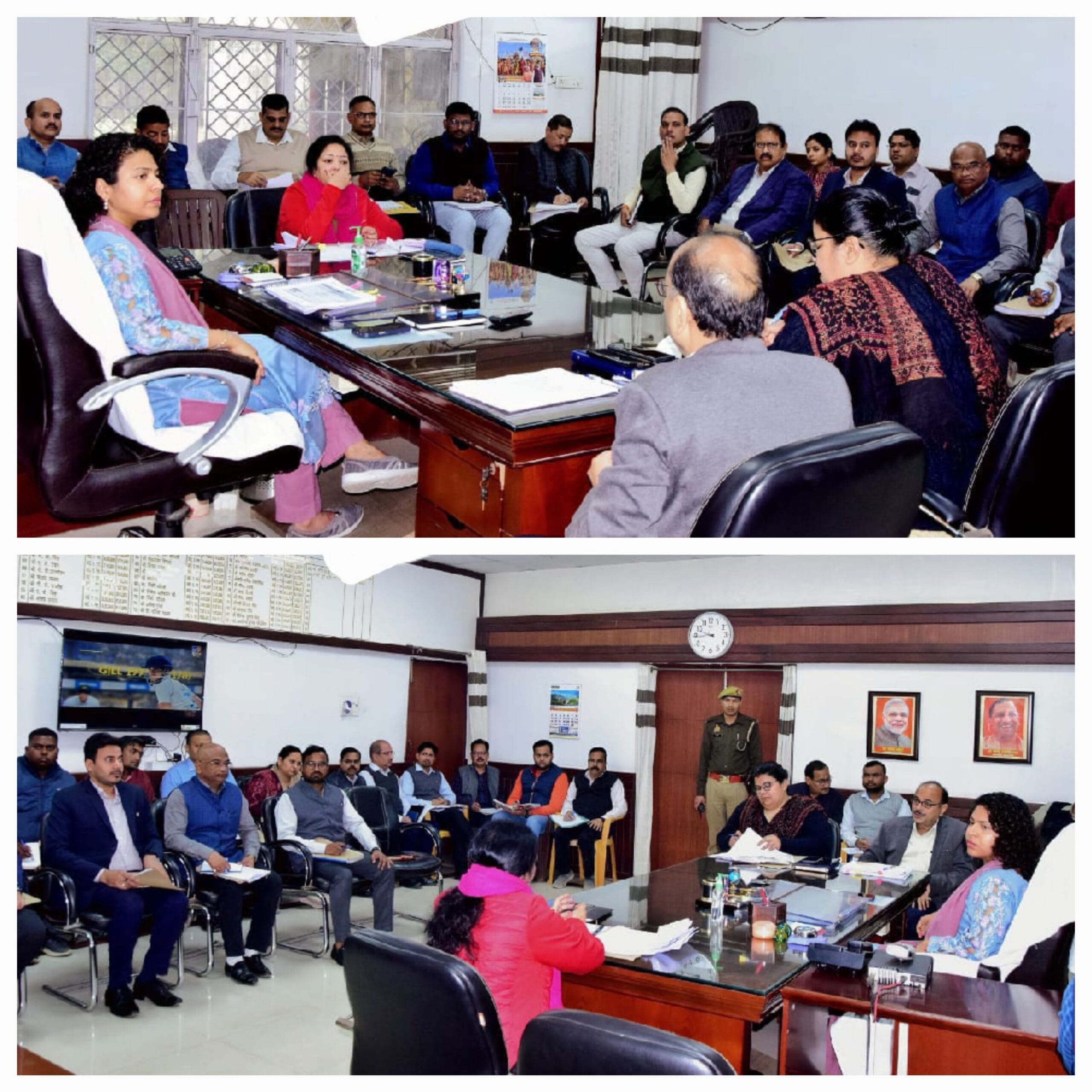 लखीमपुर खीरी – जनपद लखीमपुर खीरी में गुरुवार की सुबह डीएम दुर्गा शक्ति नागपाल ने राजस्व विभाग से संबंधित सीएम डैशबोर्ड के माध्यम से जिले में चल रही योजनाओं की कलेक्ट्रेट में समीक्षा की। उन्होंने विभागवार योजनाओं की स्थिति की जानकारी ली। उन्होंने उद्योग विभाग, आबकारी विभाग, खनन विभाग, खाद्य सुरक्षा विभाग, खाद्य एवं रसद विभाग, बाटमाप, मण्डी विभाग, राजस्व विभाग आदि विभागों की समीक्षा बैठक आयोजित की गई। बैठक का संचालन एडीएम संजय कुमार सिंह ने किया।बैठक के दौरान डीएम ने विभागीय अफसरों से सीएम डैशबोर्ड पर प्रदर्शित हो रहे कार्यों के प्रगति की रैंकिंग के संबंध में समीक्षा की। समीक्षा के दौरान सभी संबंधित विभाग के अधिकारियों को निर्देश दिए कि सभी लोग अपने-अपने विभागों की सीएम डैशबोर्ड से संबंधित कार्यो, योजनाओं की बराबर समीक्षा करते रहें, ताकि सीएम डैशबोर्ड पर विभाग की रैंकिंग खराब न होने पाए, इस पर विशेष ध्यान देने की जरूरत है। डीएम ने कहा कि आरसी के मामलो में संबंधित विभाग ओटीएस के माध्यम से जमा कराई धनराशि की सूचना तहसील को अवश्य दे।उन्होंने सभी संबंधित विभाग के अधिकारियों से कहा कि निरंतर सीएम डैशबोर्ड की निगरानी करते रहें और अपने विभागों की योजनाओं के क्रियान्वयन पर विशेष ध्यान दें, निर्धारित समय अवधि में निस्तारण करें। कहा कि संबंधित विभाग सीएम डैशबोर्ड को गंभीरता से लें। सभी विभाग छोटी से छोटी कमी पर ध्यान देते हुए अपनी रैंकिंग में सुधार लाएं।*लंबित वादों का त्वरित निस्तारण करें: डीएम* डीएम दुर्गा शक्ति नागपाल ने कलेक्ट्रेट में राजस्व विभाग के गत माह की समीक्षा की। उन्होंने राजस्व न्यायालयों में लंबित वादों के त्वरित एवं गुणवत्तायुक्त निस्तारण को लेकर निर्देश दिए। डीएम ने कहा कि राजस्व न्यायालयों में लंबित वादों का त्वरित निस्तारण किया जाए। एसडीएम अपने अधीनस्थ न्यायालयो की स्वयं नियमित रिव्यू करे।