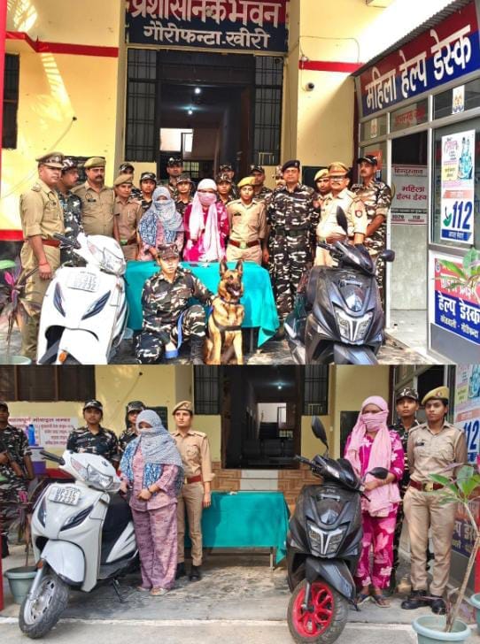 लखीमपुर खीरी – पुलिस अधीक्षक खीरी संकल्प शर्मा के निर्देशन व अपर पुलिस अधीक्षक खीरी के निकट पर्यवेक्षण में सम्पूर्ण जनपद में अपराध की रोकथाम व अवैध मादक पदार्थों के निर्माण, बिक्री व परिवहन के विरुद्ध चलाए जा रहे अभियान के अंतर्गत थाना गौरीफंटा पुलिस व एसएसबी की संयुक्त टीम द्वारा ऑपरेशन कवच के अंतर्गत की जा रही चैकिंग के दौरान थाना गौरीफंटा क्षेत्रान्तर्गत सूडा चौराहा से 02 नफर अभियुक्ताओं सन्दीप कौर पत्नी निर्मल सिंह व काव्या गुप्ता पत्नी अनमोल गुप्ता को कुल 49.75 ग्राम अवैध नशीला पदार्थ (ब्राउन शुगर) बरामद कर गिरफ्तार किया गया, जिसके सम्बन्ध में थाना गौरीफंटा पर मु0अ0सं0 15/25 धारा 8/21/23 एनडीपीएस एक्ट पंजीकृत कर विधिक कार्यवाही की जा रही है।
