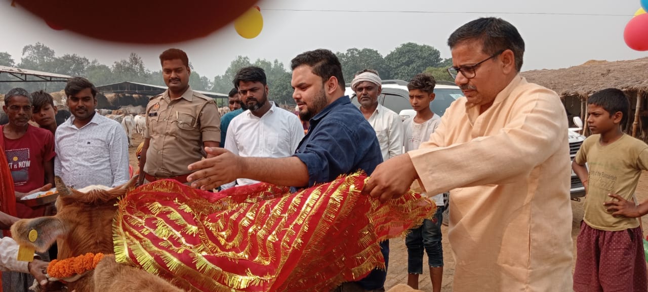 बहराइच । शासन के निर्देश पर जिलाधिकारी मोनिका रानी व मुख्य विकास अधिकारी मुकेश चन्द्र के मार्गदर्शन में शनिवार को जनपद के गौ आश्रय स्थलों में समारोहपूर्वक गोवर्धन पूजा का आयोजन किया गया। गोवर्धन पूजा के अवसर पर आयोजित होने वाले कार्यक्रमों में जनप्रतिनिधियों, क्षेत्रीय गणमान्य व संभ्रान्तजन, ग्राम प्रधान, सम्बन्धित ब्लाकों के खण्ड विकास अधिकारी, पशुपालन विभाग की ओर से मुख्य पशु चिकित्साधिकारी डॉ. राजेश उपाध्याय, उप मुख्य पशु चिकित्साधिकारी, पशु चिकित्साधिकारी, पशुधन प्रसार अधिकारी, ग्राम सचिव सहित बड़ी संख्या स्थानीय नागारिकों द्वारा प्रतिभाग किया गया।
