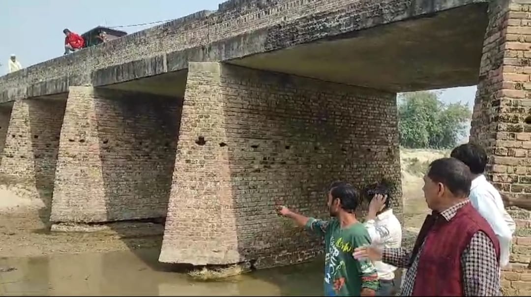 घोरही नाले पर बने पुल की स्थिति गंभीर , पुल के नीचे फर्श नहीं बनने के कारण बीच के लटक रहे दो पिलर