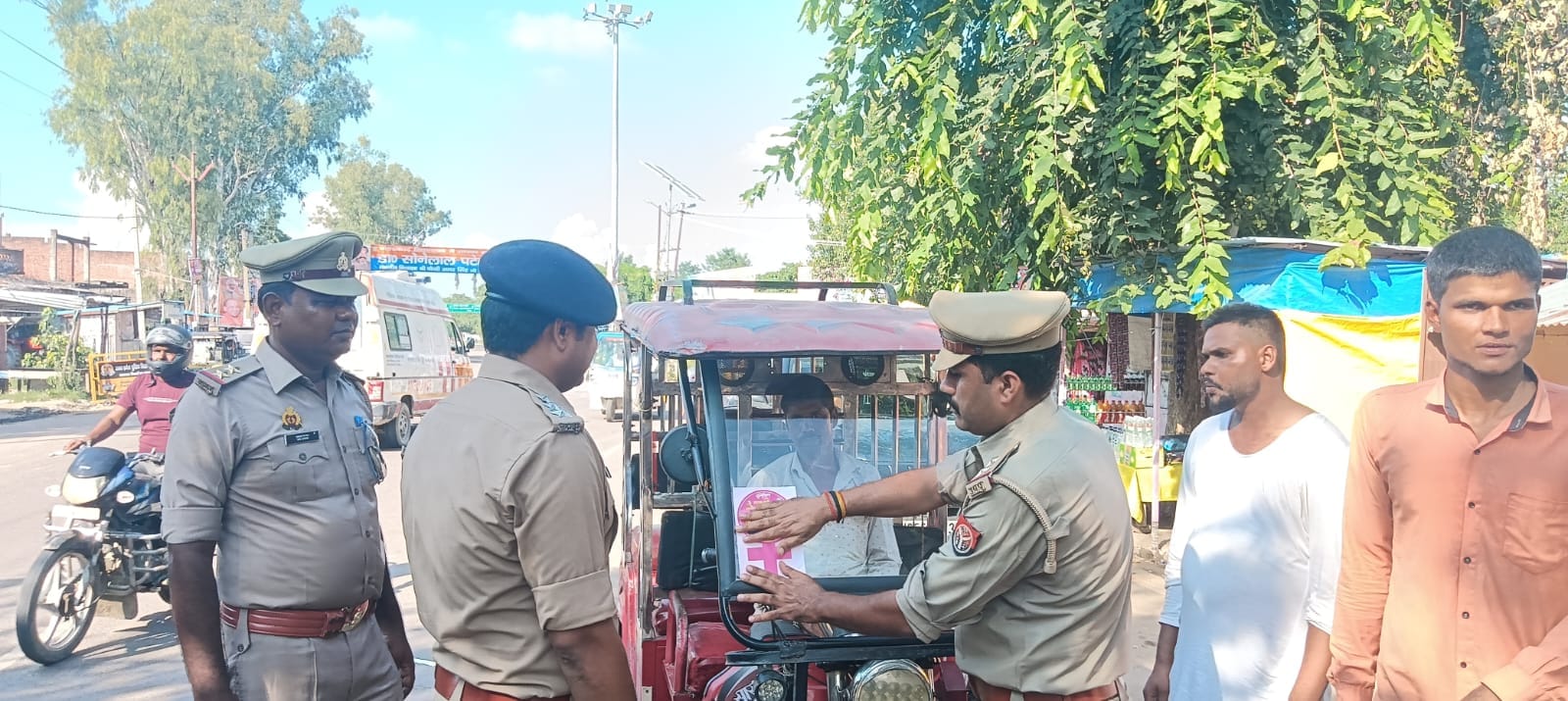बढ़नी- पुलिस अधीक्षक सिद्धार्थनगर अभिषेक महाजन द्वारा महिलाओं एवं बालिकाओं की सुरक्षा में चलाए जा रहे अभियान के तहत शुक्रवार को अपर पुलिस अधीक्षक प्रशांत कुमार प्रसाद के पर्यवेक्षण में क्षेत्राधिकारी शोहरतगढ़ प्रवीन कुमार”द्वारा मिशन शक्ति केंद्र थाना ढेबरुआ का स्थलीय निरीक्षण किया गया , साथ ही सभी पुलिस कर्मियों को आवश्यक दिशा निर्देश दिया गया। क्षेत्राधिकारी प्रवीन प्रकाश व थानाध्यक्ष नारायण लाल श्रीवास्तव द्वारा थाना क्षेत्र के ढेबरुआ चौराहे पर मिशन शक्ति अभियान के तहत मिशन शक्ति पंपलेट वाहनों पर चस्पा कर प्रचार प्रसार किया गया है। साथ ही महिला सशक्तिकरण संबंधी बातों को बताते हुए *मिशन शक्ति फेज 5.0* कार्यक्रम के अंतर्गत निम्न हेल्पलाइन नंबर, कानूनों की जानकारी देते हुए उत्तर प्रदेश सरकार द्वारा प्रदत्त किये गये अभियान के तहत जागरुक किया गया महिला संबंधी अपराध पर अंकुश लगाने हेतु विभिन्न हेल्पलाइन नंबर- 112, पुलिस आपातकालीन सेवा ,1090, वूमेन पावर हेल्पलाइन ,1076 मुख्यमंत्री हेल्पलाइन ,108, एंबुलेंस सेवा , 1930, साइबर अपराध हेल्पलाइन, 1098 चाइल्ड हेल्पलाइन, 102 स्वास्थ्य सेवा आदि के बारे में जानकारी दिया गया है।