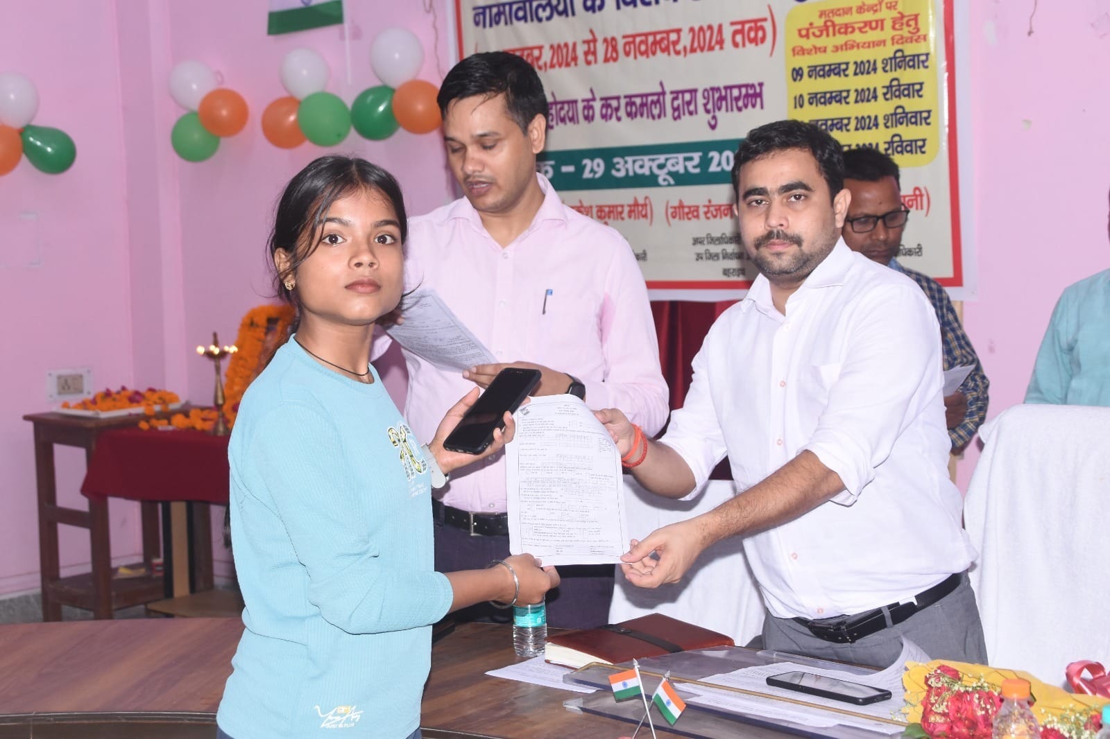 बहराइच । भारत निर्वाचन आयोग के निर्देशानुसार अर्हता तिथि 01 जनवरी 2025 के आधार पर विधानसभा निर्वाचन क्षेत्रों की निर्वाचक नामावलियों के विशेष संक्षिप्त पुनरीक्षण कार्यक्रम का आज जनपद में शुभारम्भ हुआ। तहसील सदर बहराइच के सभागार में अपर जिलाधिकारी/उप जिला निर्वाचन अधिकारी गौरव रंजन श्रीवास्तव ने मॉ सरस्वती के चित्र पर माल्यार्पण कर एवं दीप प्रज्ज्वलित कर पुनरीक्षण अभियान का श्री गणेश किया। इससे पूर्व नवनियुक्त महिला लेखपालों द्वारा सरस्वती वन्दना व स्वागत गीत प्रस्तुत किया गया। कार्यक्रम में मौजूद 18 वर्ष आयु वर्ग के नवयुवक एवं नवयुवतियों के बूथ लेबिल अधिकारियों द्वारा फार्म-6 भी भरवाये गये।