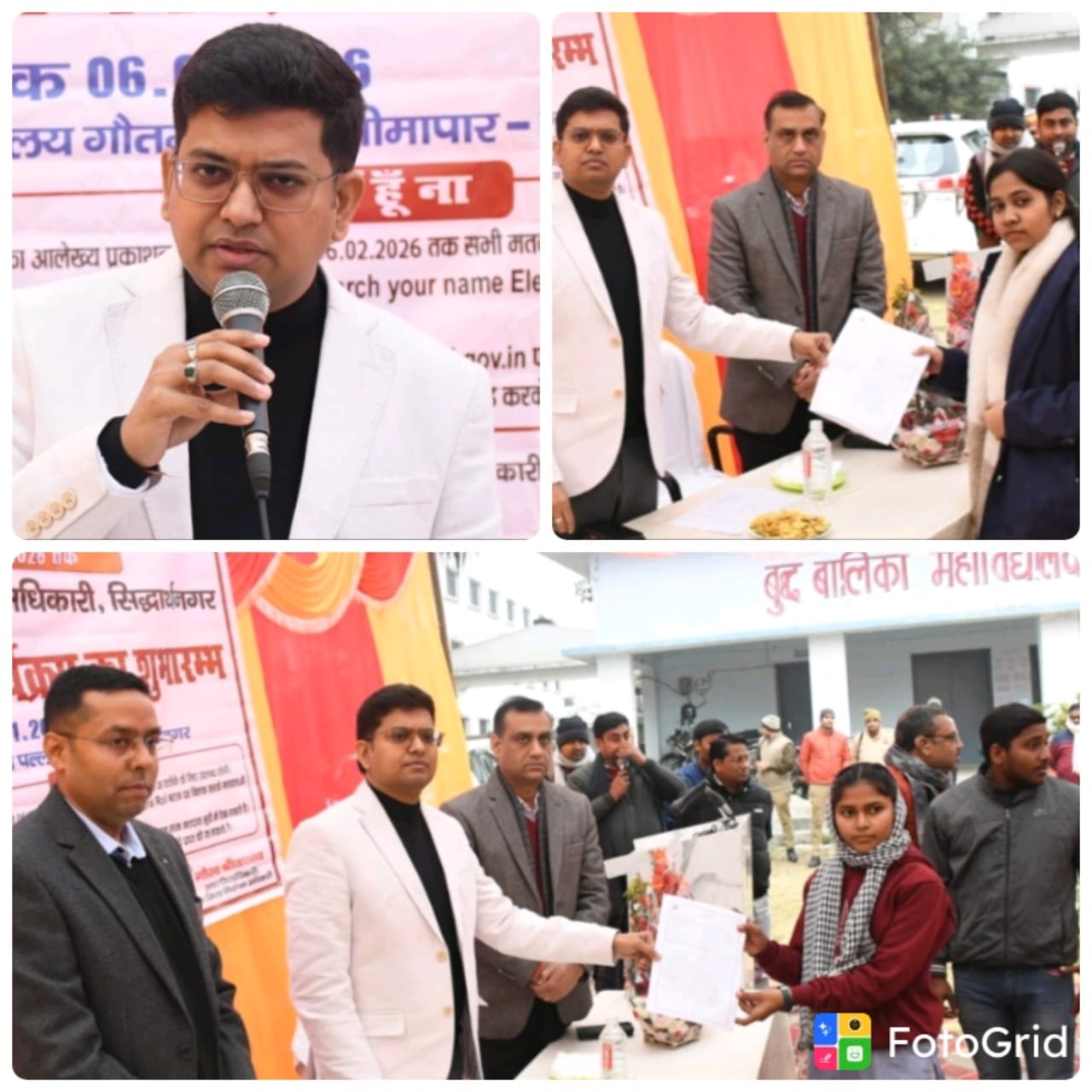 जिला निर्वाचन अधिकारी/जिलाधिकारी शिवशरणप्पा जीएन द्वारा मतदाता रजिस्ट्रेशन कार्यक्रम का शुभारम्भ बुद्ध बालिका महाविद्यालय गौतमपल्ली भीमापार सिद्धार्थनगर से किया गया। भारत निर्वाचन आयोग निर्वाचक नामावलियों का विशेष प्रगाढ़ पुनरीक्षण-2026 के अन्तर्गत दावे और आपत्तियां प्राप्त करने की अवधि 06.01.2026 से 06.02.2026 तक है।