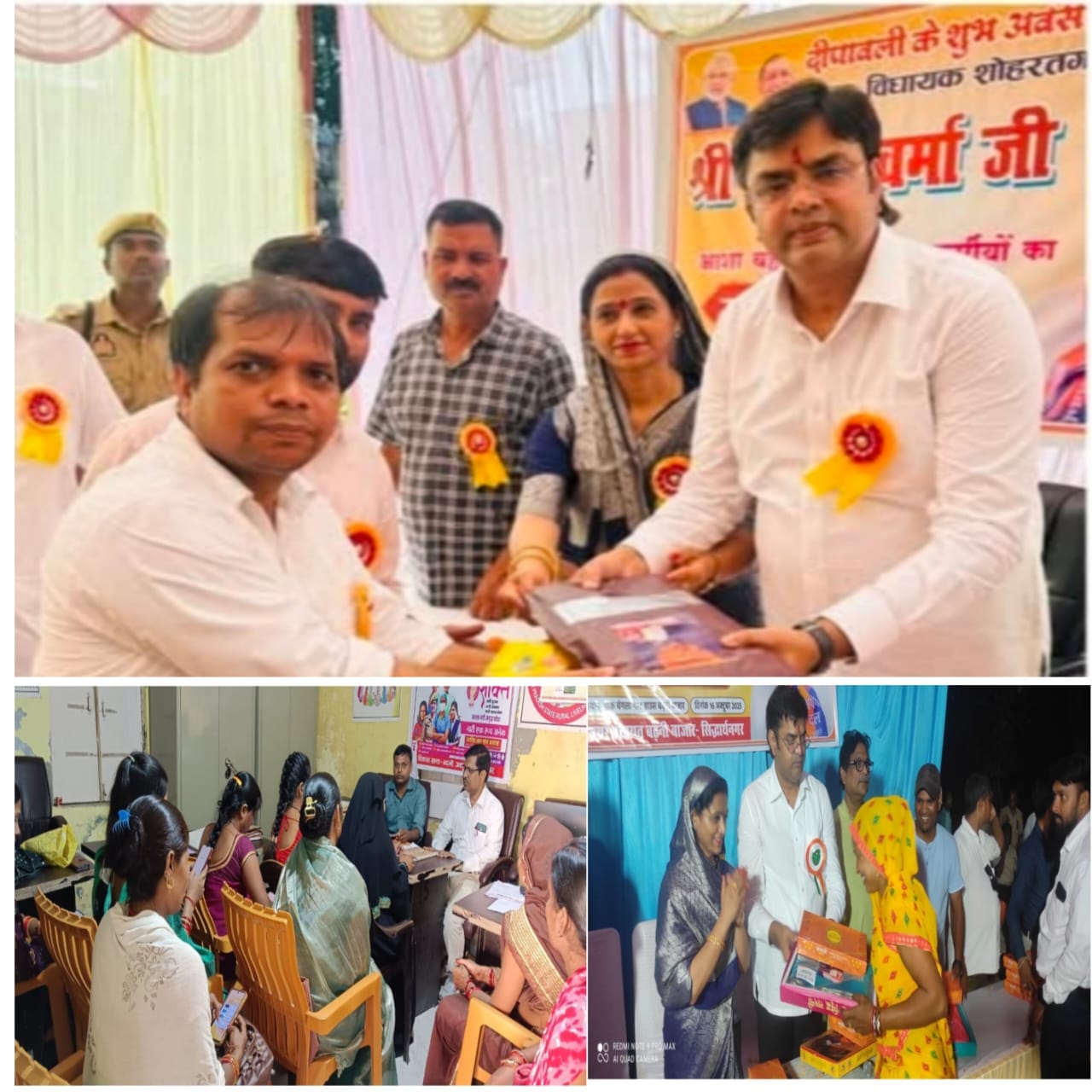 नगर पंचायत बढ़नी एवं स्वास्थ्य केंद्र परिसर में दीपावली पर्व के अवसर पर विधायक विनय वर्मा ने सफाई कर्मियों एवं आशा कार्यकर्ताओं को उपहार किया वितरण