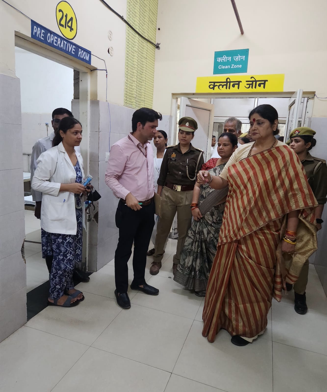 बहराइच। मा. अध्यक्ष (राज्यमंत्री स्तर प्राप्त), उ.प्र. राज्य महिला आयोग डॉ. बबीता सिंह चौहान ने जनपद भ्रमण कार्यक्रम के दूसरे दिन महर्षि बालार्क जिला चिकित्सालय के 100 बेडेड एम.सी.एच. विंग, जिला कारागार एवं वन स्टाप सेन्टर का निरीक्षण कर विभिन्न व्यवस्थाओं का जायज़ा लिया। 100 बेडेड एम.सी.एच. विंग के निरीक्षण के दौरान डॉ. चौहान ने ओ.पी.डी., इंजेक्शन रूम, अल्ट्रासाउण्ड रूम, प्रसव कक्ष, आपरेशन थियेटर, एस.एन.सी.यू. (सिक न्यू बार्न यूनिट), के.एम.सी. (कंगारू मदर केयर), जनरल वार्ड इत्यादि का निरीक्षण कर चिकित्सालय द्वारा मरीज़ों को प्रदान की जाने वाली सेवाओं एवं सुविधाओं के बारे में जानकारी प्राप्त की।
