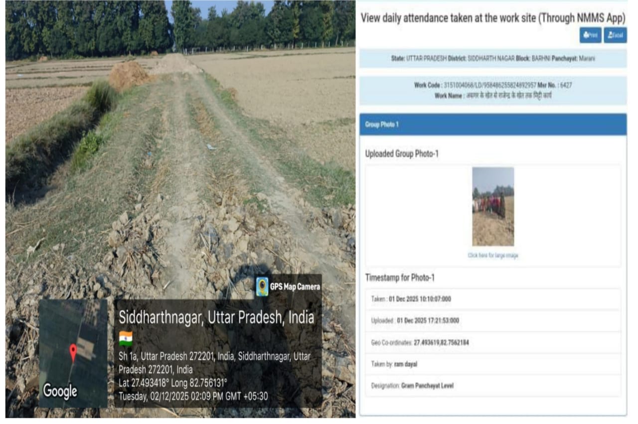 बढ़नी- विकास खण्ड बढ़नी अन्तर्गत ग्राम पंचायत मड़नी में मनरेगा योजना में बड़े पैमाने पर भ्रष्टाचार का मामला सामने आया है। मंगलवार को दोपहर बाद करीब दो बजे मीडिया टीम ने कार्य स्थल पर पहुंच कर सच्चाई जानने का प्रयास किया लेकिन घंटों इंतजार के बाद भी कार्य स्थल पर कोई मजदूर नजर नहीं आया। वहीं कार्य स्थल पर कोई शाइन बोर्ड भी नहीं लगा दिखाई दिया।Work Code : 3151004068/LD/958486255824892957 Msr No. : 6428Work Name : असगर के खेत से राजेन्द्र के खेत तक चकरोड मिट्टी पटाई कार्य के नाम पर करीब 50 लोगों का मास्टर रोल भरा जा रहा है।सूत्रों की मानें तो सुबह के समय कार्य स्थल पर मनरेगा श्रमिकों का हाजिरी लगाने का नियम है लेकिन रोजगार सेवक द्वारा मनमानी कर शाम के समय कुछ चुनिंदा लोगों को खड़ा कर फोटो अपलोड कर फर्जीवाड़ा किया जा रहा है। जिसमें बढ़नी ब्लाक के जिम्मेदारों की लापरवाही या मौन सहमति को दर्शा रहा है। वहीं मौके पर मौजूद गांव निवासी बबलू ने बताया कि उसका भी जाब कार्ड बना है। लेकिन उसे काम नही दिया जा रहा है, रोजगार सेवक व ग्राम प्रधान सिर्फ अपने चहेते लोगों का फर्जी मास्टर रोल भरकर घोटाला किया जा रहा है। चकरोड के दोनों तरफ गेहूं सरसों की फसल की बुवाई हो चुकी है, मिट्टी नहीं मिल रही है सिर्फ कागजों में कार्य दिखाकर भ्रष्टाचार किया जा रहा है।बताया जाता है कि मड़नी गांव में मनरेगा के तहत करीब 50 मजदूरों के नाम पर फर्जी मस्टररोल भरे जाते हैं। इन मस्टररोल में तस्वीरें एक ही होती हैं, लेकिन नाम और अन्य आंकड़े अलग-अलग दर्शायें जाते हैं। कई बार एक ही तस्वीर का उपयोग करके अलग-अलग मस्टररोल बनाये जाते हैं और कुछ मामलों में मजदूरों की संख्या अधिक दिखाई जाती है। उक्त संबंध में एपीओ शाहिद सिराज व मनरेगा अधिकारी संजय शर्मा ने कहा कि मामले की जांच कराई जाएगी, बीडीओ बढ़नी द्वारा काल रिसीव नहीं होने के कारण कोई बात नही हो पाई है।श