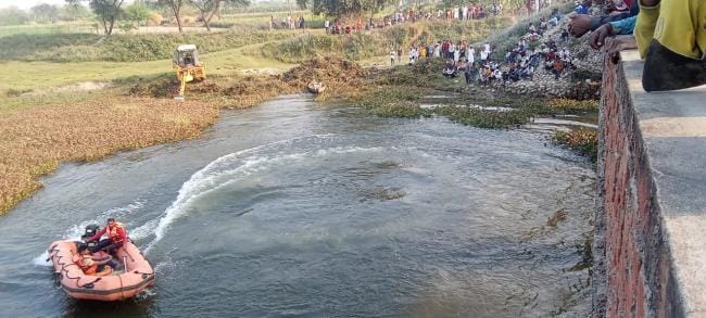 लखीमपुर खीरी- जनपद लखीमपुर खीरी के धौरहरा थाना क्षेत्र में गुरुवार को युवक रात को धौरहरा ढखेरवा हाइवे के हरदुआ पुल से नाले में गिर गया था। और आज चौथे दिन हरदुआ नाले से बरामद हो किया गया।तीन दिनों तक सुबह से शाम तक सर्च आपरेशन चलने के बाद आज चौथे दिन सोमवार को फ्लड पी ए सी सीतापुर की टीम व स्थानीय गोताखोरों को लगभग दोपहर 12 बजे सफलता मिली। जिसके बाद शव को खोज निकालने के बाद परिजनों में कोहराम मच गया। धौरहरा थाना क्षेत्र से गई बारात में मनोज(20) वर्ष पुत्र तेजनरायन तेलियनपुरवा निवासी शामिल होकर भारत से अपने घर के लिए वापसी कर रहे थे। जिसके बाद बीते गुरुवार रात करीब एक बजे के करीब अज्ञात वाहन की टक्कर से नाले में गिर गया था। जिसके बाद पुलिस को सूचना दी जिससे मौके पर पुलिस ने पहुंच कर वह पर पूरी बात को समझ कर मनोज को तलाश करने के लिए जुट गई। पुलिस और स्थानीय गोताखोरों ने मनोज के बॉडी को खोज नहीं पाए जिसके बाद पुलिस के द्वारा फ्लड पी ए सी सीतापुर की टीम को बुला कर सर्च आपरेशन चलाकर शव को बाहर निकाला गया। शव बरामद होते ही परिजनों में चीख-पुकार मच गई। जिससे मौके पर मौजूद पुलिस ने शव को कब्जे में लेकर पोस्टमार्टम के लिए जिला मुख्यालय भेज दिया।इस मामले में जानकारी देते हुए क्षेत्राधिकारी धौरहरा प्रीतम पाल सिंह व प्रभारी निरीक्षक सुरेश मिश्रा ने बताया कि लगभग 12 बजे मनोज का शव बरामद हो सका आवश्यक कार्रवाई के लिए जिला मुख्यालय भेजा जा रहा है।