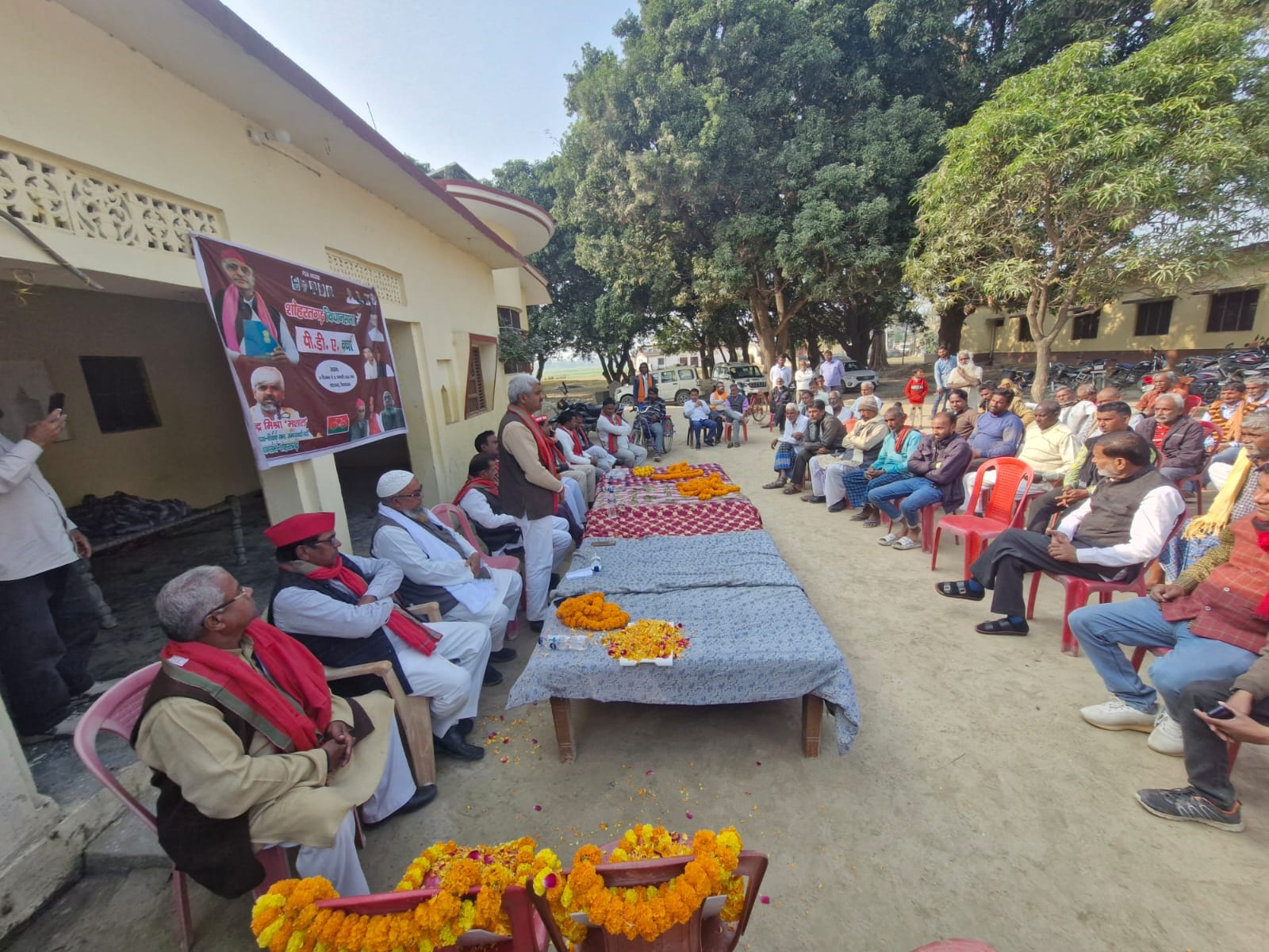 शोहरतगढ़ विधानसभा क्षेत्र के ग्राम पंचायत जुड़िकुइया में गुरुवार को पीडीए चर्चा का आयोजन समाजवादी शिक्षक सभा राष्ट्रीय उपाध्यक्ष मणेन्द्र मिश्रा मशाल के नेतृत्व में हुआ।कार्यक्रम के आरम्भ में बाबा साहब डॉ भीम राव अंबेडकर और नेता मुलायम सिंह यादव के चित्र पर माल्यार्पण कर पुष्पांजलि अर्पित किया गया।पीडीए चर्चा पर आयोजित जाेन,सेक्टर,बूथ प्रभारी सहित उपस्थित ग्रामीणों को संबोधित करते हुए समाजवादी शिक्षक सभा व राष्ट्रीय उपाध्यक्ष मणेन्द्र मिश्रा ने कहा कि समाजवादी पार्टी के राष्ट्रीय अध्यक्ष अखिलेश यादव के नेतृत्व में समाजवादी पार्टी संविधान एवं बाबा साहब का अपमान करने वालों के खिलाफ हर स्तर पर आंदोलन करेगी। देश का यह दुर्भाग्य है कि केंद्र और राज्य सरकारों ने न केवल संवैधानिक संस्थाओं को कमजोर किया है बल्कि जनता की बुनियादी समस्याओं की उपेक्षा की है।समाजवादी पार्टी 26 दिसंबर से 25 जनवरी तक शोहरतगढ़ विधानसभा में सेक्टरवार पीडीए चर्चा आयोजन कर सम्मानित जनता को संविधान बचाने एवं संविधान निर्माता बाबा साहब डॉ भीमराव अंबेडकर के विचारों के विषय में जागरूकता अभियान चलाएगी।साथ ही सामाजिक न्याय,जातीय जनगणना, महंगाई,बेरोजगारी, आरक्षण, शोहरतगढ़ में बदहाल सड़के, भ्रामक बिजली बिल के नाम पर जनता का उत्पीड़न के खिलाफ समाजवादी पार्टी सड़क से सदन तक संघर्ष करेगी।पीडीए चर्चा को संबोधित करते हुए जिला अध्यक्ष व पूर्व विधायक लालजी यादव ने कहा कि देश में संवैधानिक संस्थाओं को कमजोर किया जा रहा है। इसके लिए पार्टी से जुड़े लोगों को संघर्ष के लिए तैयार रहना होगा। कार्यक्रम की अध्यक्षता शोहरतगढ़ विधानसभा अध्यक्ष हरिराम यादव ने किया। पीडीए चर्चा में मंचासीन पदाधिकारियों ने भी कार्यक्रम को संबोधित किया। इस दौरान समाजवादी शिक्षक मणेन्द्र मिश्रा मशाल,पूर्व विधायक लालजी यादव, हरिराम यादव, राम मिलन भारती, मुरली धर मिश्रा, शकील शाह, कमरुज्जमा ,शकील शाह,राकेश दुबे, अफजल खान,अजय चौरसिया,लवकुश सैनी,घनश्याम यादव, जयश्री गुप्ता, सुनील पाठक, विनोद, हजारी प्रसाद,कामता प्रसाद,जहूर,अर्जुन यादव व बूथ प्रभारी सहित आदि ग्रामीण मौजूद रहे।