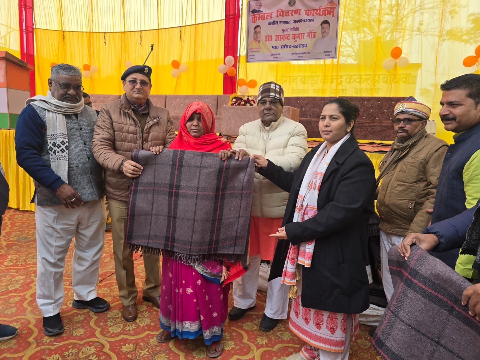 बहराइच । मा. मुख्यमंत्री योगी आदित्यनाथ जी व शासन के निर्देश पर अत्यधिक ठण्ड एवं शीतलहरी से उत्पन्न होने वाली समस्याओं के दृष्टिगत निराश्रित एवं असहाय तथा कमज़ोर वर्ग के असुरक्षित व्यक्तियों को राहत पहुॅचाये जाने के उद्देश्य से नानपारा तहसील प्रशासन द्वारा सराहनीय एवं मानवीय पहल करते हुए ग्राम ककरहा बोधवा में जरूरतमंद एवं पात्र लोगों को ठंड से बचाने के लिए पूर्व सांसद अक्षयवर लाल गोंड व उपजिलाधिकारी नानपारा मोनालिसा जौहरी द्वारा कंबल का वितरण किया गया। कार्यक्रम का नेतृत्व उपजिलाधिकारी नानपारा मोनालिसा जौहरी द्वारा किया गया।