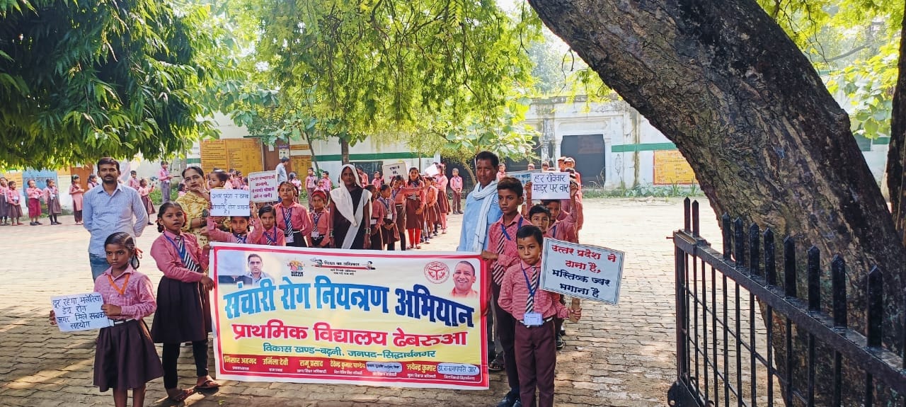 बढ़नी- विकास खंड बढ़नी के उच्च प्राथमिक विद्यालय सिसवा शिवभारी एवम् प्राथमिक विद्यालय ढेबरुवा विकासें क्षेत्र बढ़नी सिद्धार्थनगर में जे o ई o/ए o ई o एस o जागरूकता रैली निकाली गई।सिसवा उर्फ शिवभारी तथा ढेबरूवा होते हुए विद्यालय परिसर में रैली समाप्त हुई।छात्र, बुखार में देरी ,पड़ेगी भारी।चूहा ,मच्छर और छछून्दर ,आने न दो घर के अंदर।हर रविवार मच्छर पर वार के नारे लगाते हुए गांव में प्रभात फेरी निकाली। रैली में प्रधानाध्यापक निसार अहमद, महेन्द्र कुमार मिश्र सहायक अध्यापक शाह आलम ,अनुपम तिवारी शिक्षा मित्र आशुतोष कुमार मिश्र,अंशु चौधरी आदि की उपस्थिति रही।
