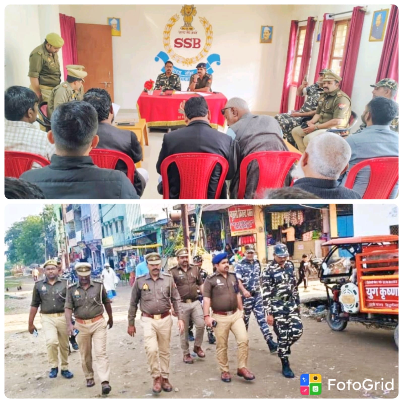 बढ़नी- पुलिस अधीक्षक सिद्धार्थनगर डॉ0 अभिषेक महाजन के आदेश के क्रम में एवं अपर पुलिस अधीक्षक सिद्धार्थनगर प्रशान्त कुमार प्रसाद के निर्देशन में रविवार को क्षेत्राधिकारी शोहरतगढ़़ मयंक द्विवेदी द्वारा एसएसबी कैम्प बढ़नी पर थाना ढेबरुआ पुलिस तथा एसएसबी व इण्डो-नेपाल सीमावर्ती ग्राम सुरक्षा समिति के सदस्यों के साथ बैठक कर ऑपरेशन कवच के उद्देश्यों से अवगत कराया गया तथा किसी भी अवैध गतिविधियों इत्यादि के सम्बन्ध में तुरन्त सूचना देने हेतु बताया गया तथा भारत-नेपाल अन्तर्राष्ट्रीय बार्डर पर पैदल गश्त किया गया। इस दौरान प्रभारी आपरेशन कवच व थानाध्यक्ष ढ़ेबरुआ नरायन लाल श्रीवास्तव सहित एसएसबी व पुलिस के अन्य अधिकारी कर्मचारीगण मौजूद रहें।
