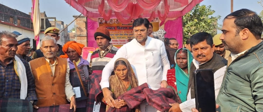 बढ़नी- विकास खण्ड बढ़नी के तुलसियापुर चौराहे पर तहसील प्रशासन के द्वारा करीब हजारों लोगों को कंबल वितरित किया गया। इस दौरान विधायक विनय वर्मा ने कहा कि केन्द्र व प्रदेश सरकार गरीबों व असहायों को कई प्रकार की कल्याणकारी योजनाओं से लाभान्वित कर रही है। तुलसियापुर चौराहे पर एक हजार गरीब परिवारों को नि:शुल्क कंबल वितरित करके अच्छा लग रहा है। बिना भेदभाव इसी प्रकार सरकारी वस्तुओं का वितरण होना चाहिए। इस दौरान एसडीएम न्यायिक राहुल सिंह ने कहा कि सभी असहायों को कंबल वितरित किया जाएगा। इस दौरान तहसीलदार अजय कुमार, नायब तहसीलदार महबूब अंसारी, लेखपाल मोहित सिंह, प्रबन्धक अनुपम शुक्ल, पंचम पटेल, मयंक शुक्ल, अजय वरुण, मुश्ताक अहमद, प्रदीप कमलापुरी, रामदास मौर्य, अशोक पासवान आदि मौजूद रहें।